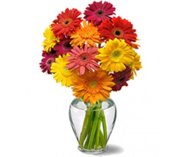 10 brightly colored gerber daisies arranged in a clear glass vase. These will spread cheer and joy to any recipient. Colors may vary depending on selection. Order flowers online now or call Terra Flora Flowers Denver at 720 300 8894 directly to place your order today with a local Denver florist. Flower Delivery in Denver CO Available.